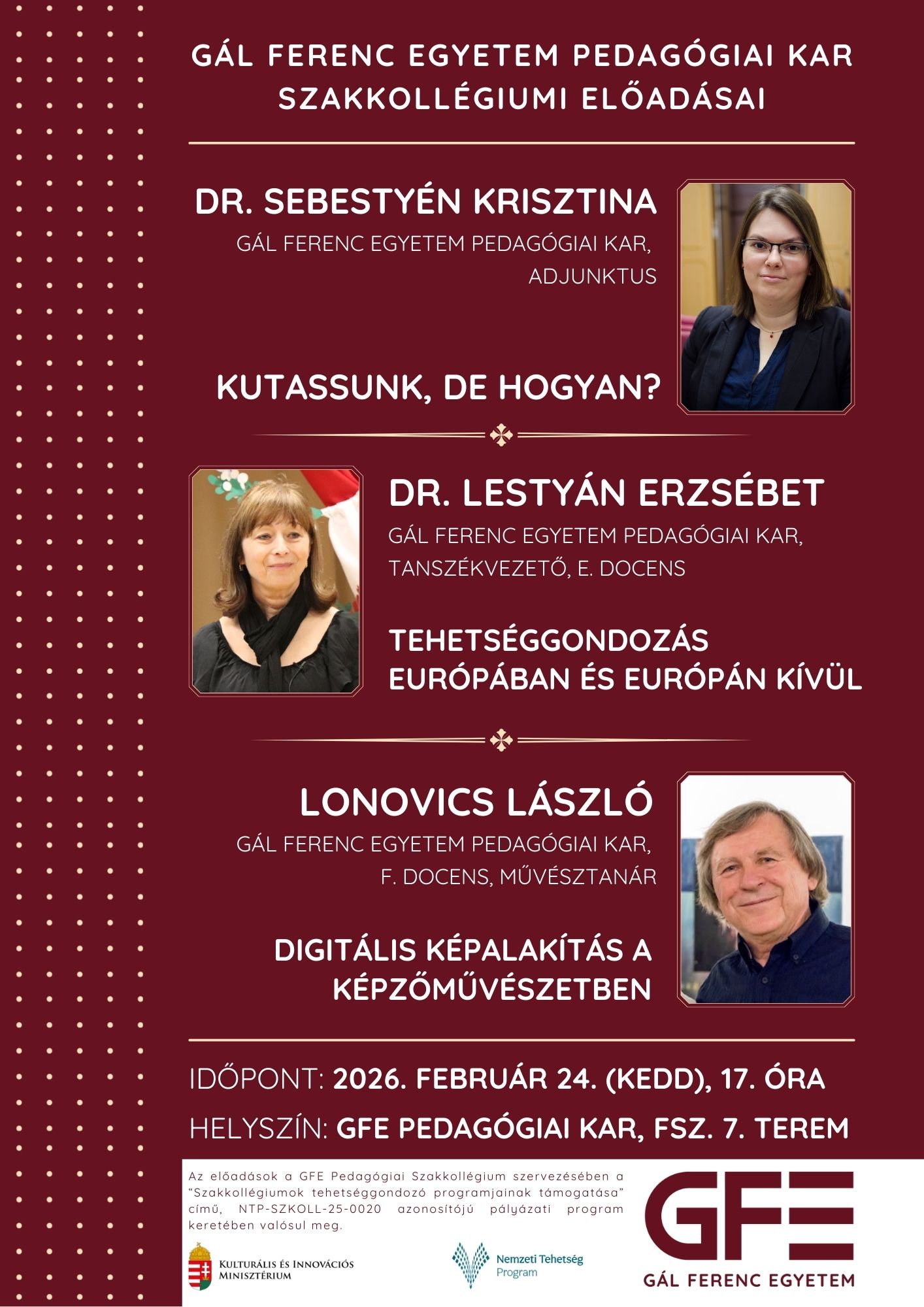 Dr. Sebestyén Krisztina, adjunktus, Dr. Lestyán Erzsébet, tanszékvezető és Lonovics László, f. docens előadása 2026. február 24-én 17 órától