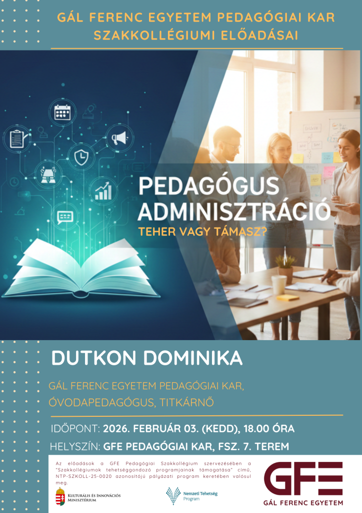 Szeretettel hívunk minden érdeklődőt a GFE Pedagógiai Kar Szakkollégiumának következő előadásaira 2026. február 24-én 17…