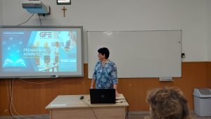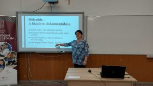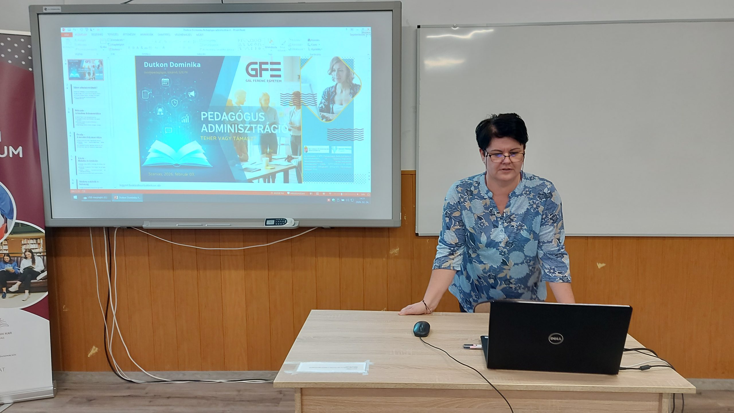 2026.február 3-án tartott szakkollégiumi kurzuson Dutkon Dominika óvodapedagógus, dékáni titkárnő a pedagógiai adminisztráció rejtelmeibe vezette be a hallgatóságot, feltéve a kérdést: teher vagy támasz-e a papírmunka? A hallgatók számára rávilágított arra, hogy a dokumentáció nem felesleges nyűg, hanem a pedagógus szakmai védőhálója, hiszen a pontos feljegyzések objektivitást és biztonságot nyújtanak egy esetleges konfliktus során. A kurzus gyakorlati tanácsokkal is szolgált: a „tízperces szabály” és a tudatos nyelvhasználat alkalmazása segít abban, hogy az adminisztráció ne nyomasztó kényszer, hanem a mindennapi munka stabil támasza legyen.