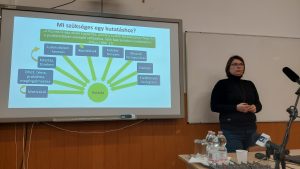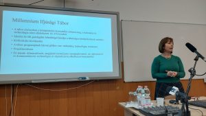 A program folytatásában Dr. Lestyán Erzsébet egyetemi docens tartott szakkollégiumi előadást „Tehetséggondozás Európában és Európán kívül” címmel.