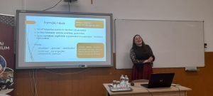 Az est második előadója Soczó Daniella a Gál Ferenc Egyetem Pedagógiai Kar mesteroktatója, aki „A felső tagozatosok helyesírási hibái” címmel tartott előadást. A Szarvasi Gyakorló Általános Iskola tanulóinak munkáit vizsgálta meg friss kutatásában és a következő kérdésekre kereste a választ: Milyen kihívásokkal küzdenek az 5-6. osztályos diákok, amikor tollat ragadnak? Mi áll a gyakori helyesírási hibák hátterében.