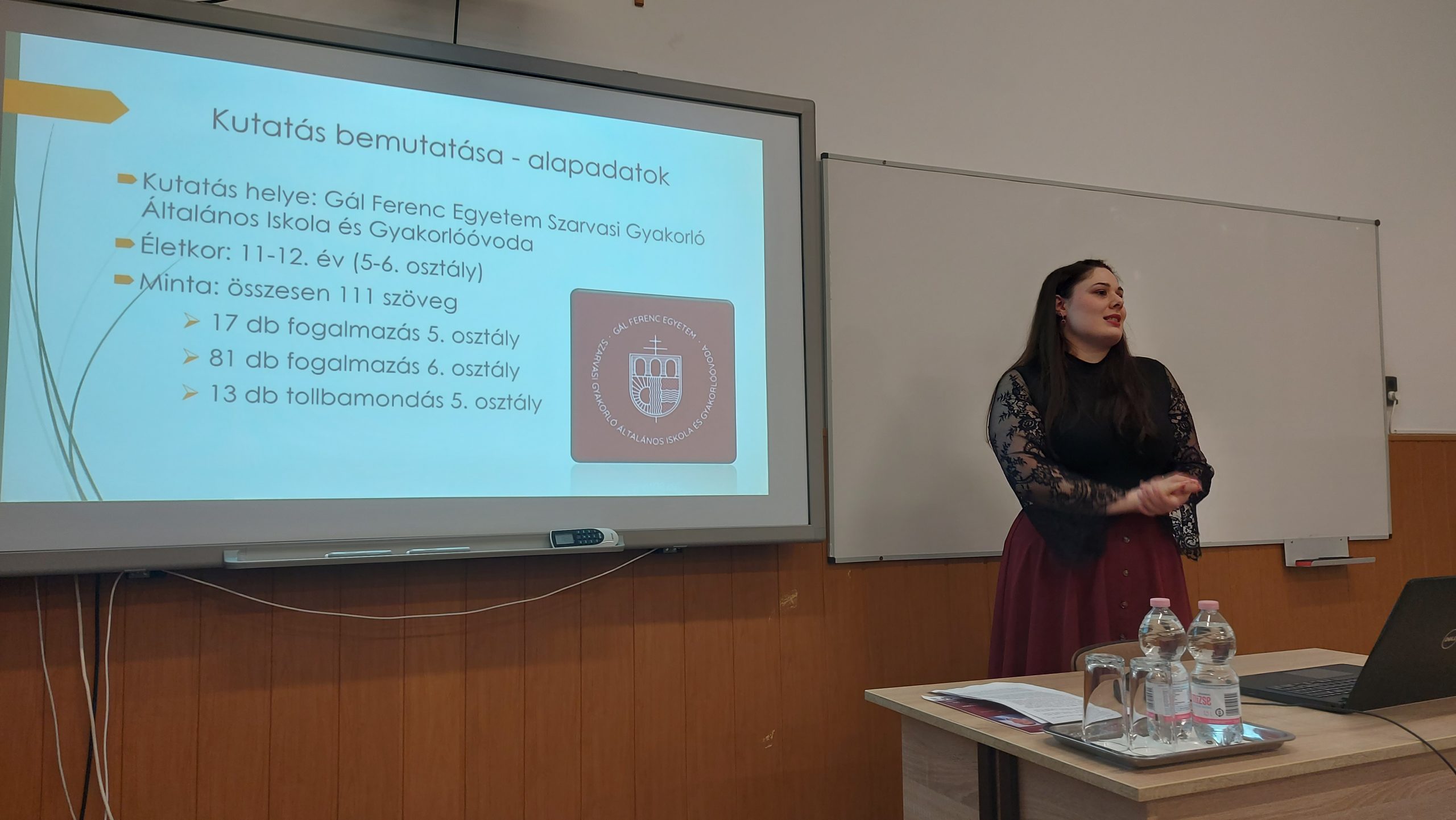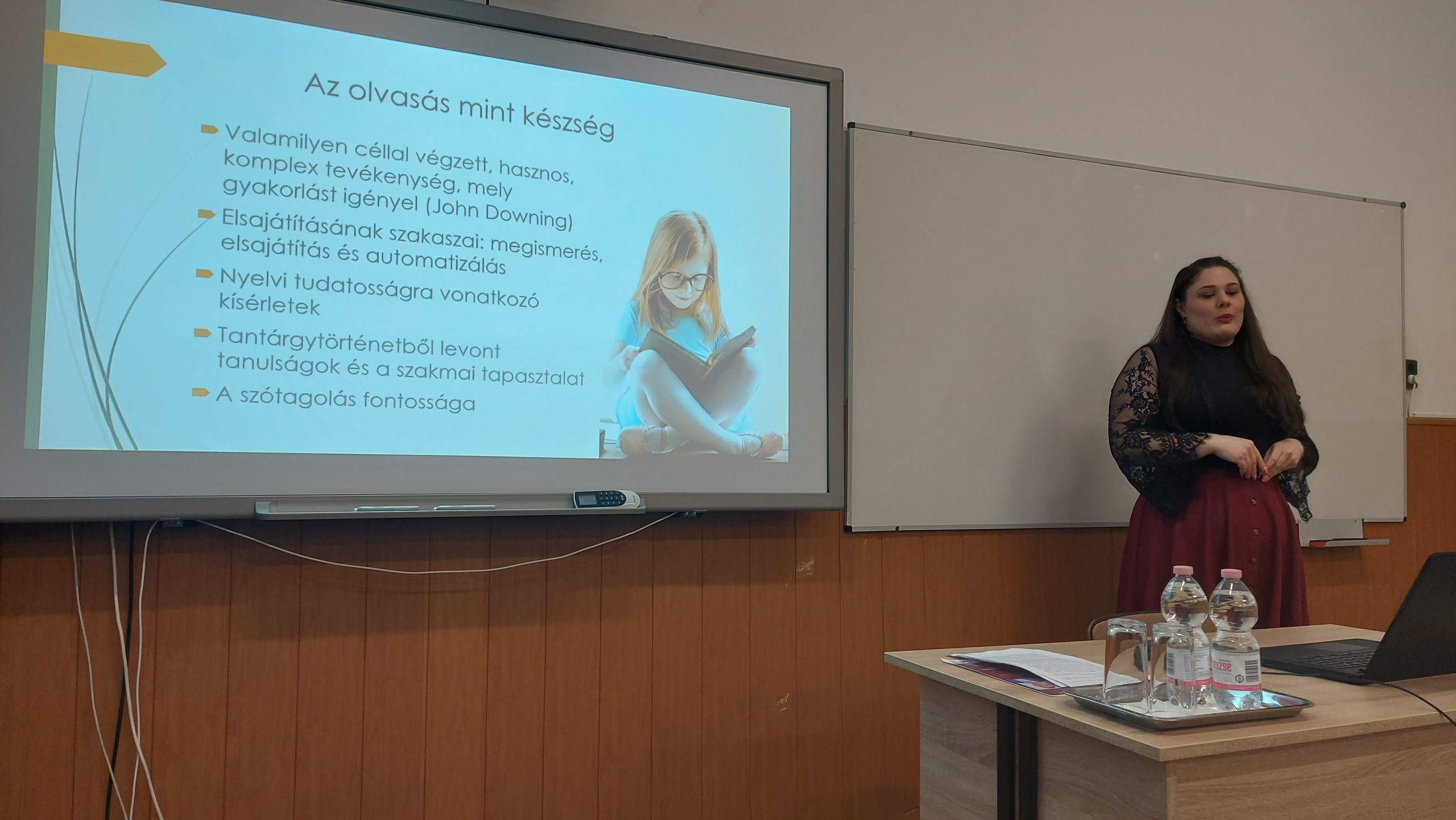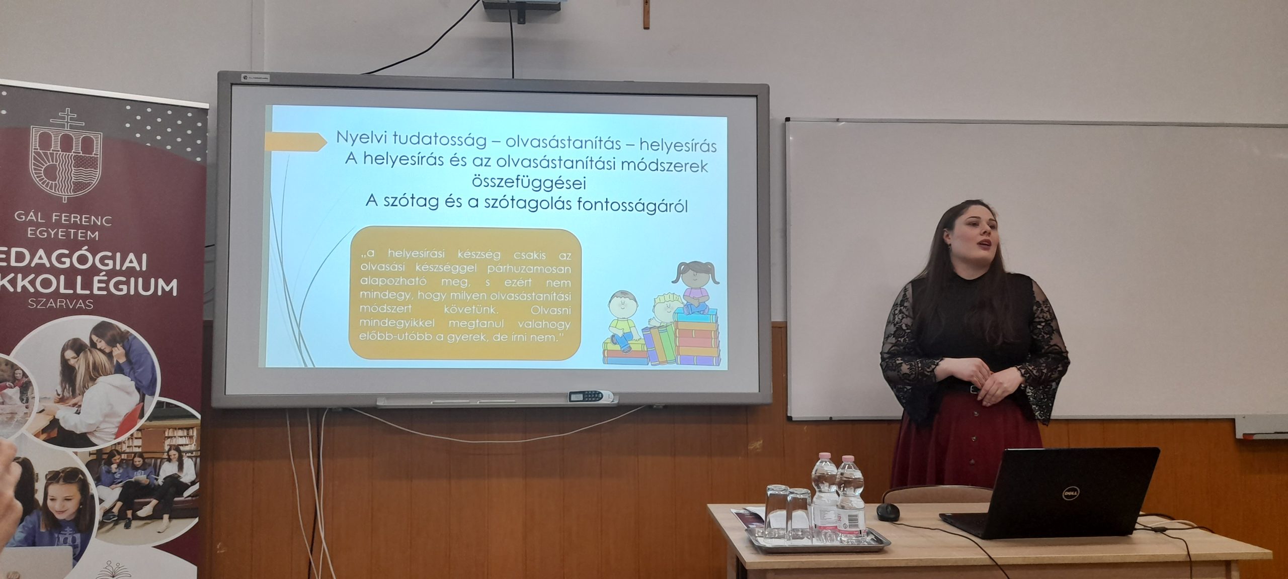 Az est második előadója Soczó Daniella a Gál Ferenc Egyetem Pedagógiai Kar mesteroktatója, aki „A felső tagozatosok helyesírási hibái” címmel tartott előadást. A Szarvasi Gyakorló Általános Iskola tanulóinak munkáit vizsgálta meg friss kutatásában és a következő kérdésekre kereste a választ: Milyen kihívásokkal küzdenek az 5-6. osztályos diákok, amikor tollat ragadnak? Mi áll a gyakori helyesírási hibák hátterében.