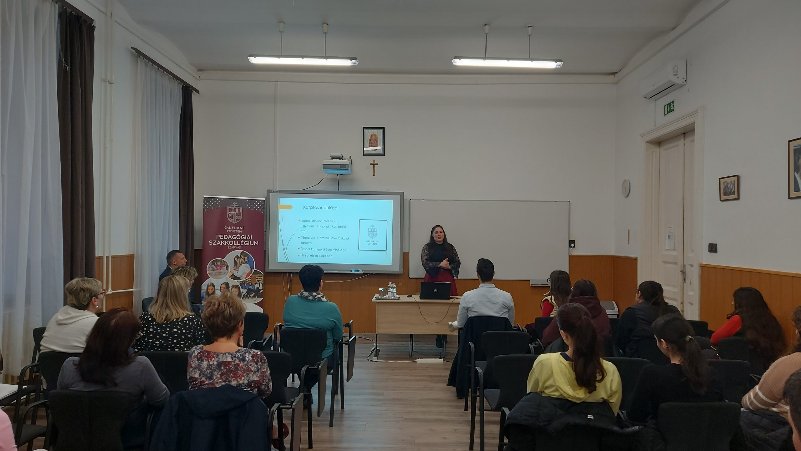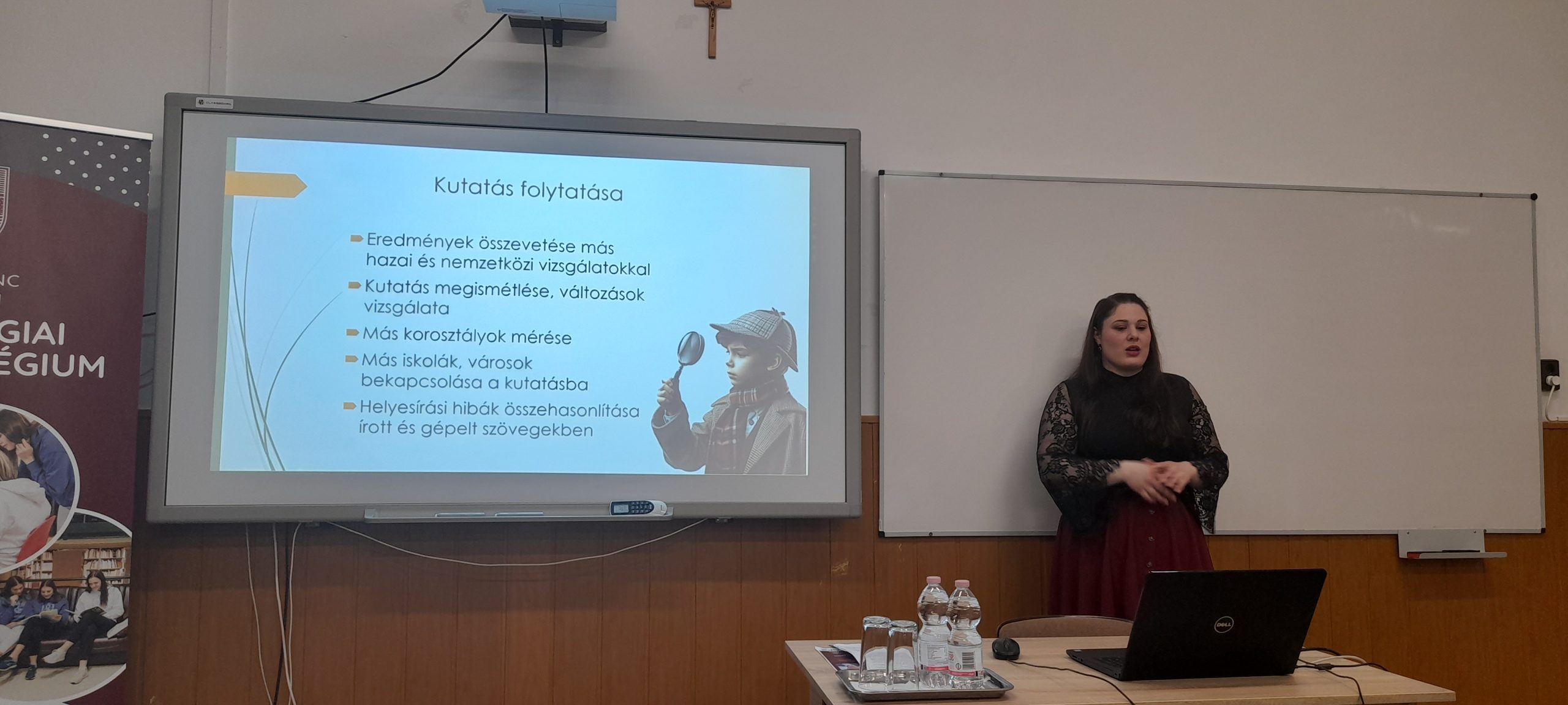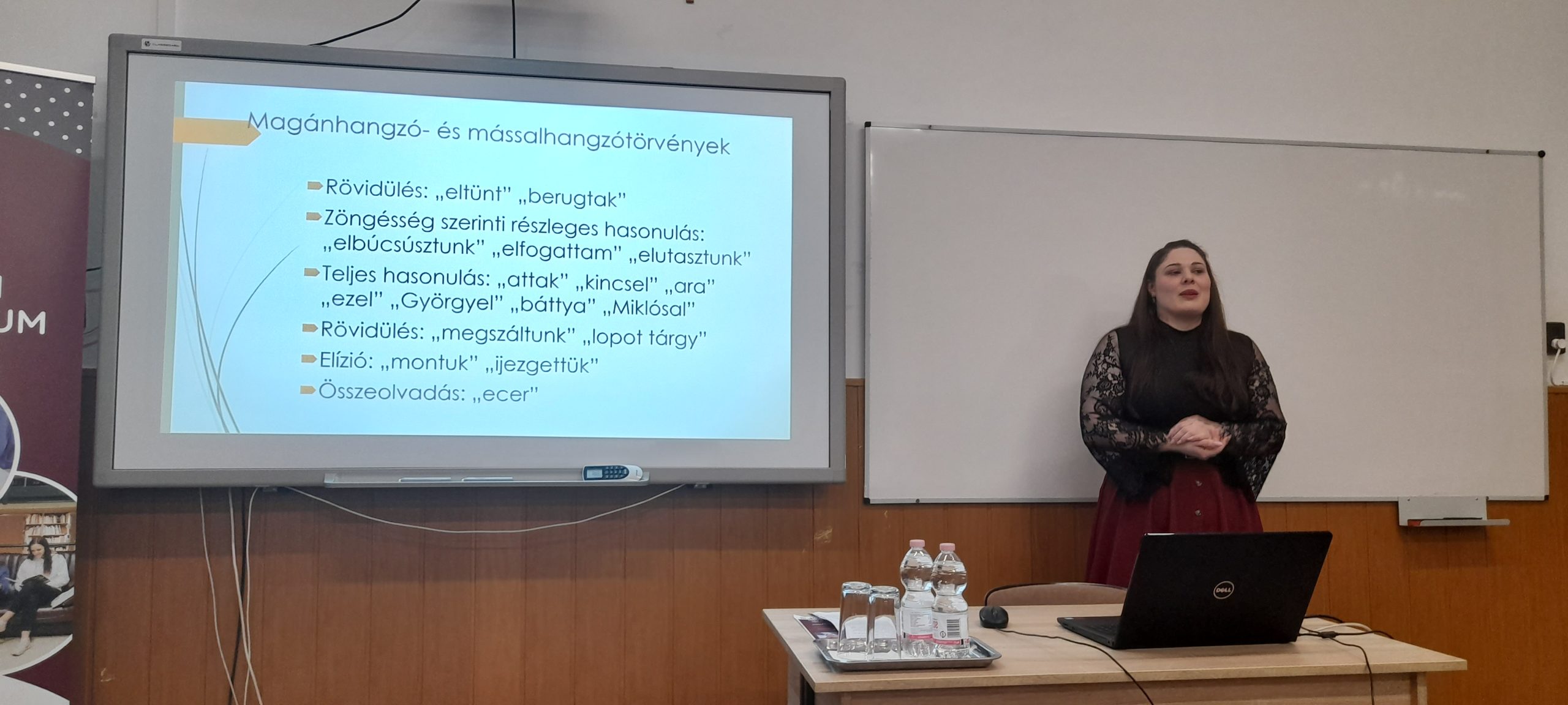 Az est második előadója Soczó Daniella a Gál Ferenc Egyetem Pedagógiai Kar mesteroktatója, aki „A felső tagozatosok helyesírási hibái” címmel tartott előadást. A Szarvasi Gyakorló Általános Iskola tanulóinak munkáit vizsgálta meg friss kutatásában és a következő kérdésekre kereste a választ: Milyen kihívásokkal küzdenek az 5-6. osztályos diákok, amikor tollat ragadnak? Mi áll a gyakori helyesírási hibák hátterében.